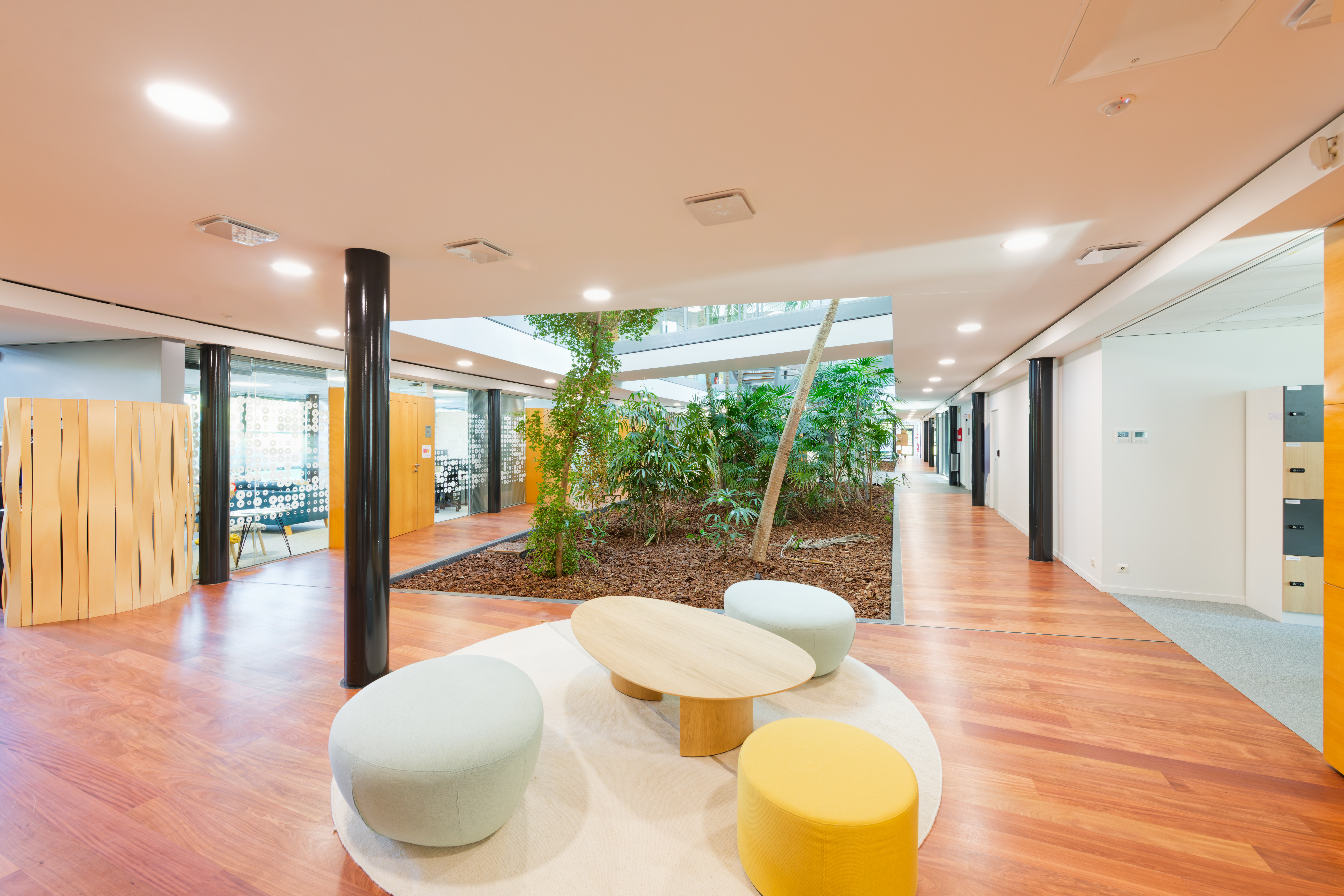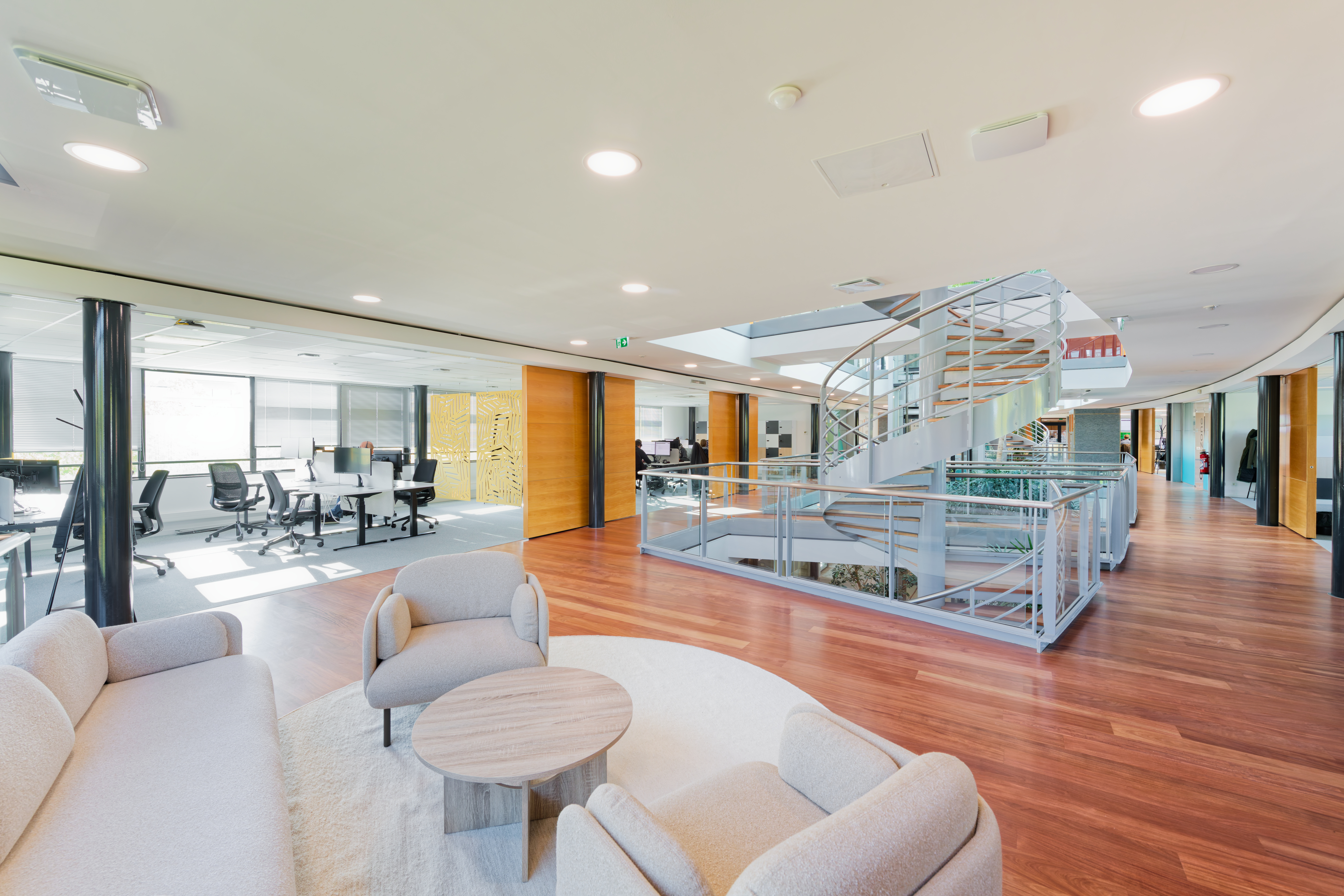 Au-delà des performances techniques, cette réhabilitation s’est accompagnée d’un réaménagement intérieur complet. Les espaces ont été décloisonnés pour favoriser la luminosité et la fluidité, tandis que de nouvelles zones collaboratives et de convivialité ont été aménagées pour répondre aux modes de travail hybrides. Chaque mètre carré a été conçu pour améliorer l’expérience utilisateur et valoriser le bien-être des collaborateurs. Le résultat : un environnement de travail moderne, flexible et inspirant, fidèle à la vision du GROUPE IDEC d’un immobilier où la performance humaine complète la performance énergétique.