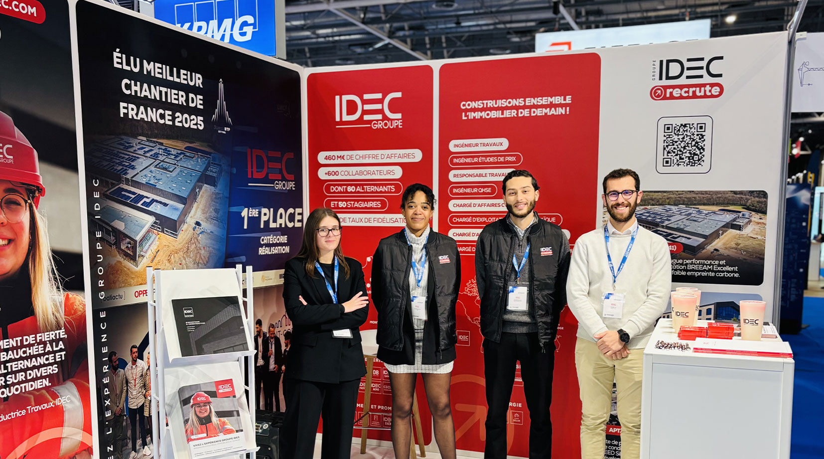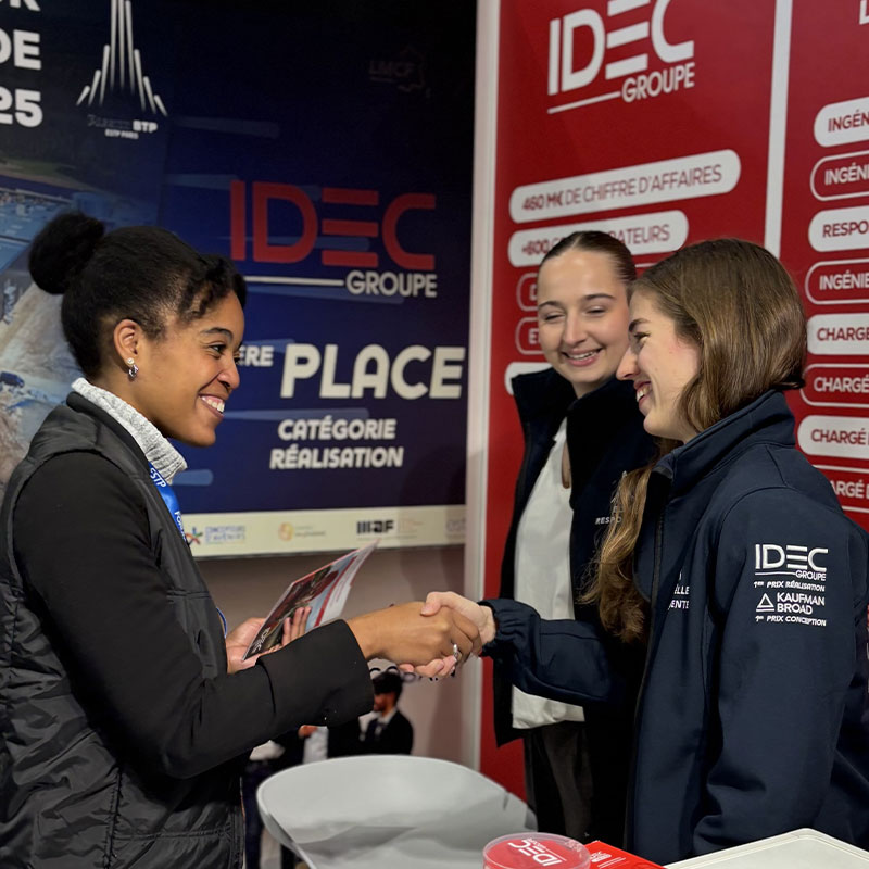 Nous remercions chaleureusement l’ESTP pour l’organisation de ce forum, ainsi que tous les étudiants rencontrés pour la qualité de leurs échanges. Chez GROUPE IDEC, nous sommes convaincus que les jeunes talents représentent l’avenir : ils portent les idées, l’énergie et l’ambition nécessaires pour répondre aux défis environnementaux et sociétaux de demain. C’est pourquoi nous investissons pleinement dans leur accompagnement, leur formation et leur intégration au sein de nos équipes.